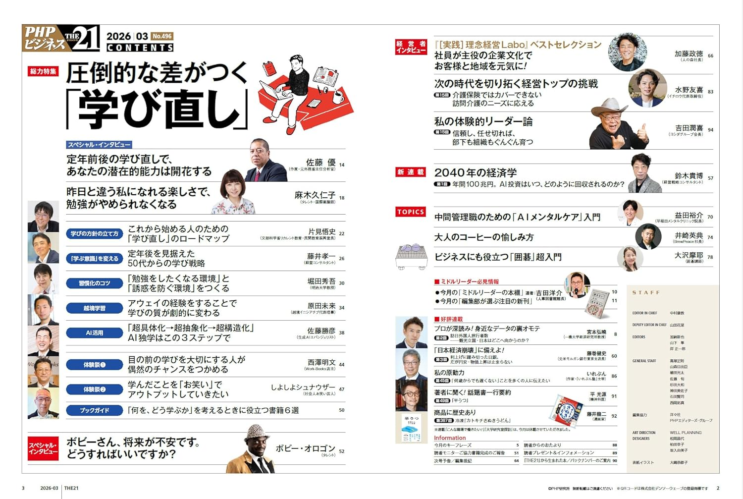 このたび、PHP研究所が展開するキャリア支援/学び直し支援/発信活動>に関連し、いれぶんがPHP研究所発行の月刊誌『THE21』に掲載されましたので、お知らせいたします。